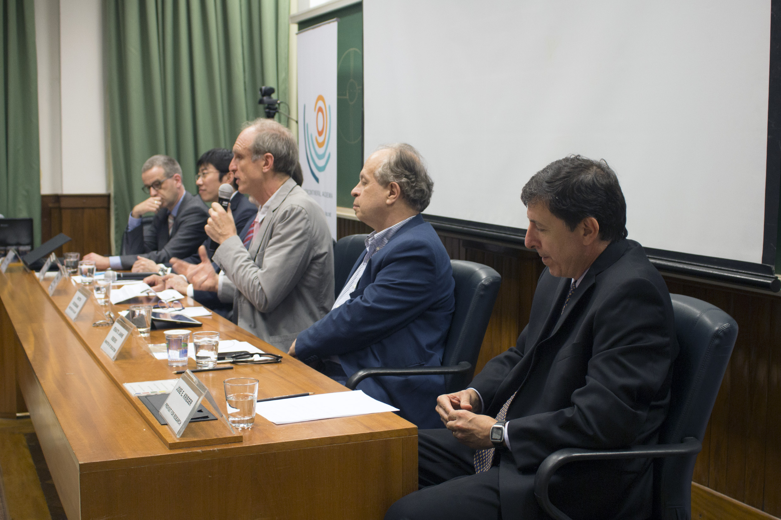 Carsten Dose, Dapeng Cai, Hernan Chaimovich, Martin Grossmann, Minister Renato Janine Ribeiro and José Eduardo Krieger